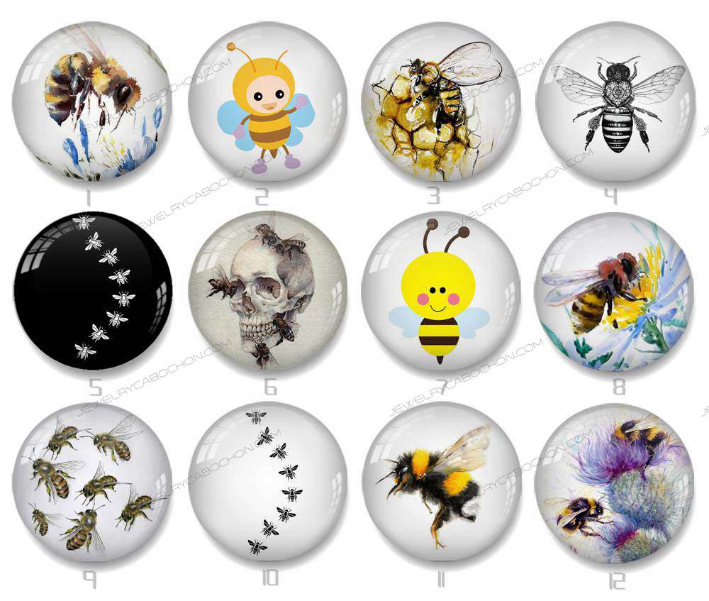 Handmade Round Photo Glass Cabochon bee 1165B