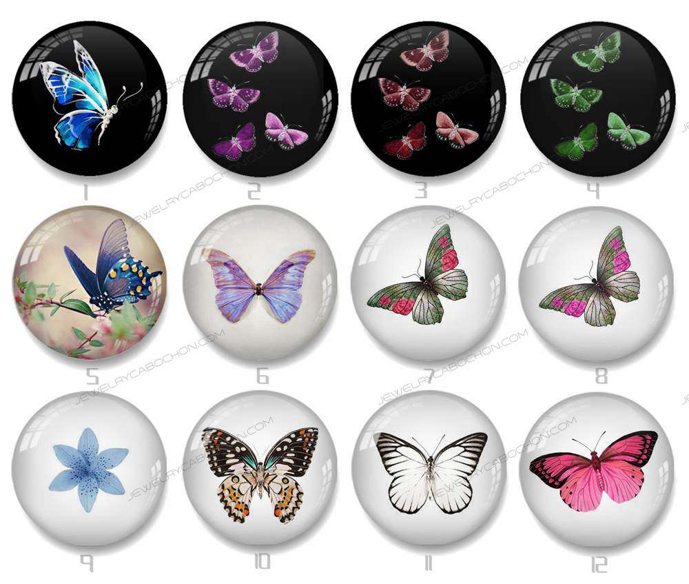 Handmade Round Photo Glass Cabochon butterfly 1039B