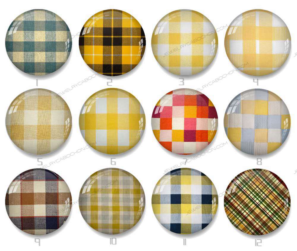 Handmade Round Photo Glass Cabochon Checkered 1088B