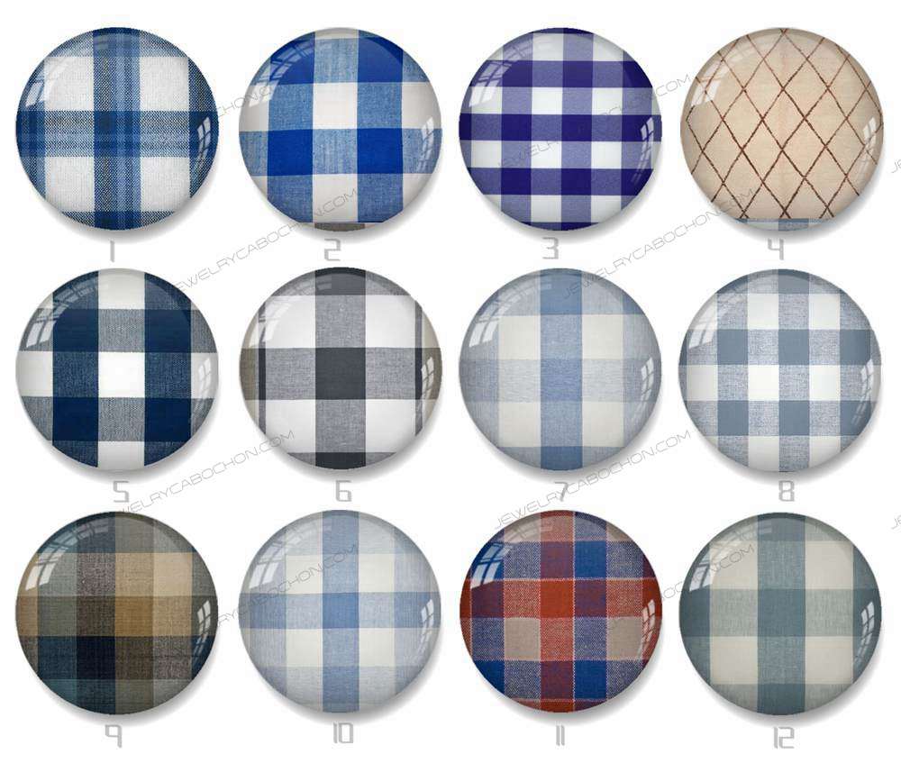 Handmade Round Photo Glass Cabochon Checkered 1092B