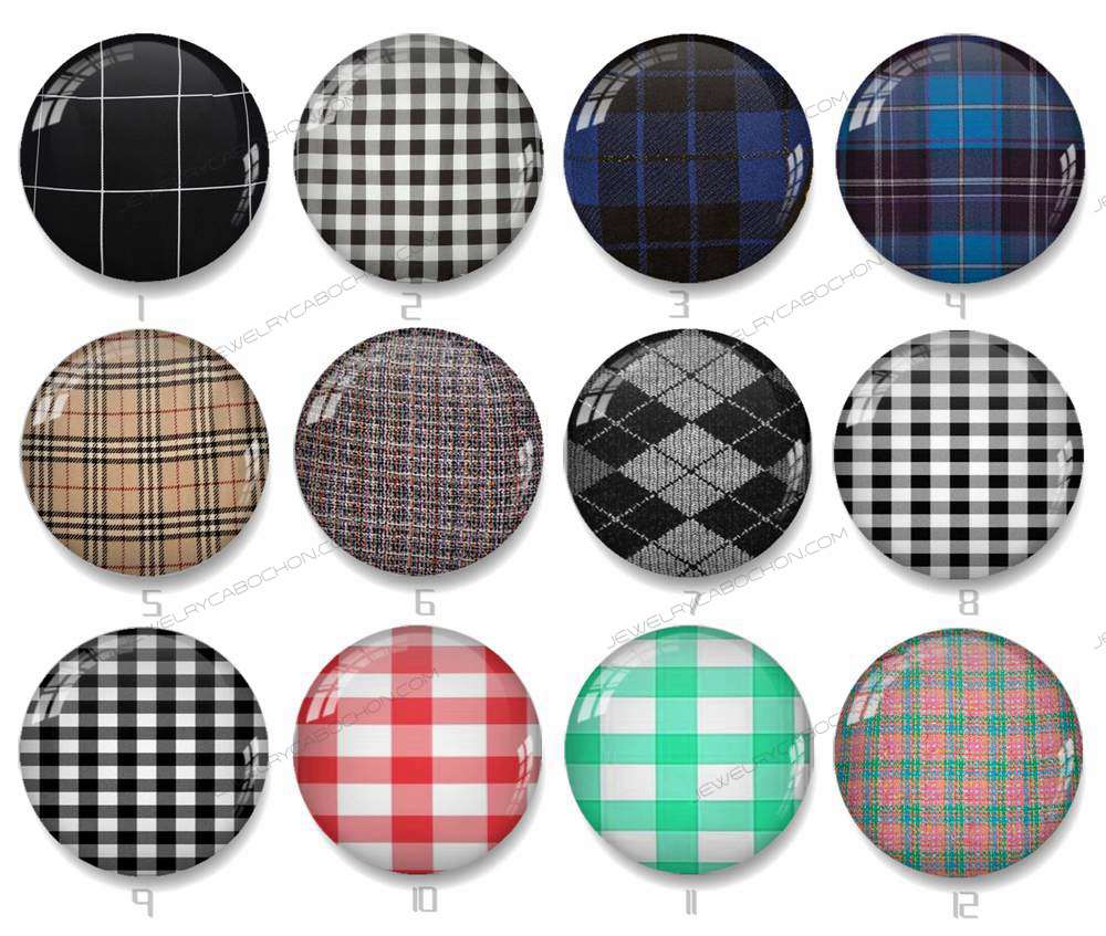 Handmade Round Photo Glass Cabochon Checkered 1370B