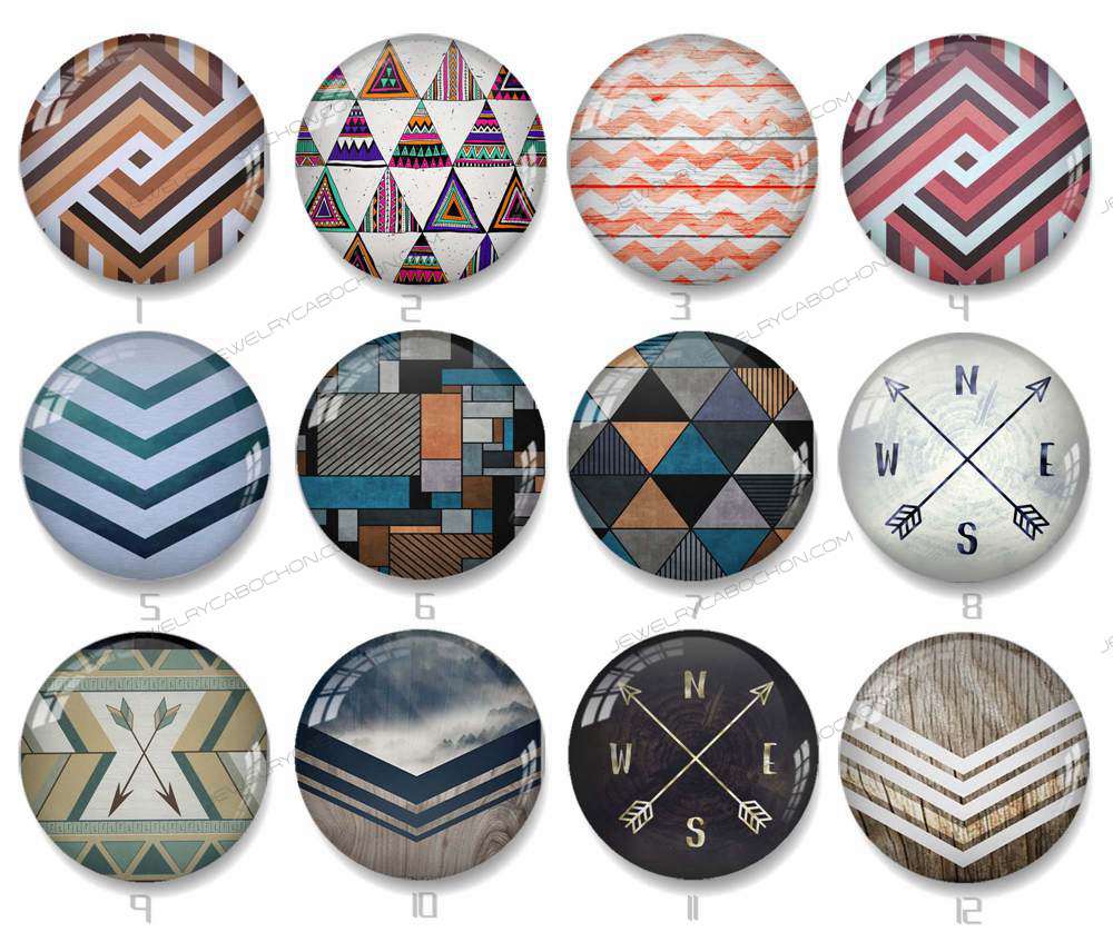 Handmade Round Photo Glass Cabochon geometric 1317B