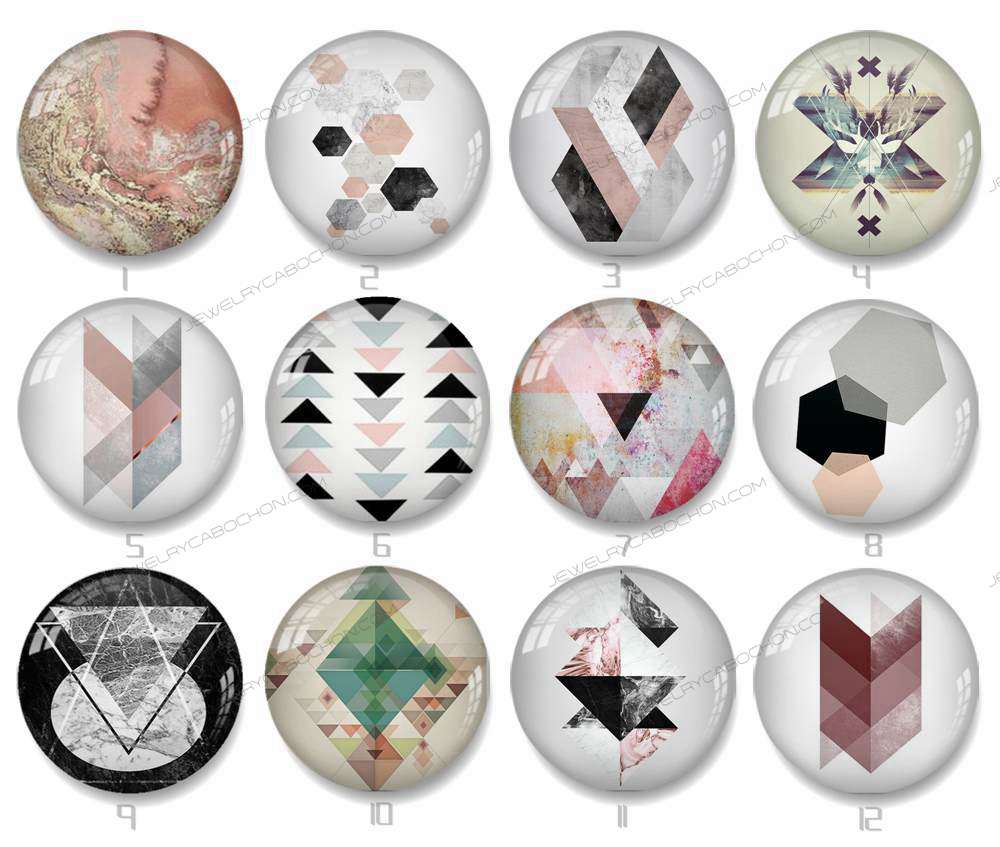 Handmade Round Photo Glass Cabochon geometric 1395B