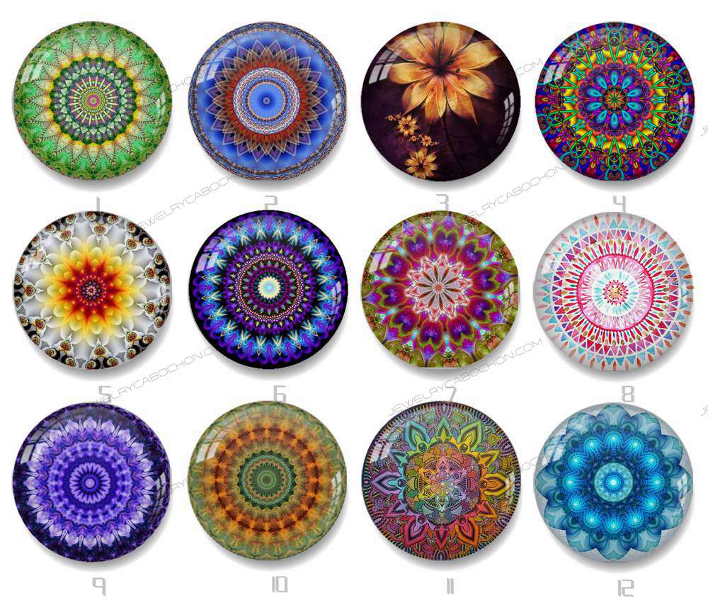 Handmade Round Photo Glass Cabochon geometric Pattern 1401B