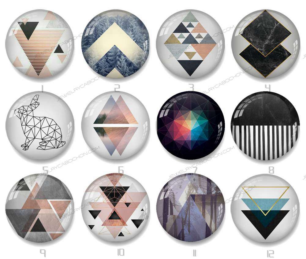 Handmade Round Photo Glass Cabochon geometric Pattern 1413B
