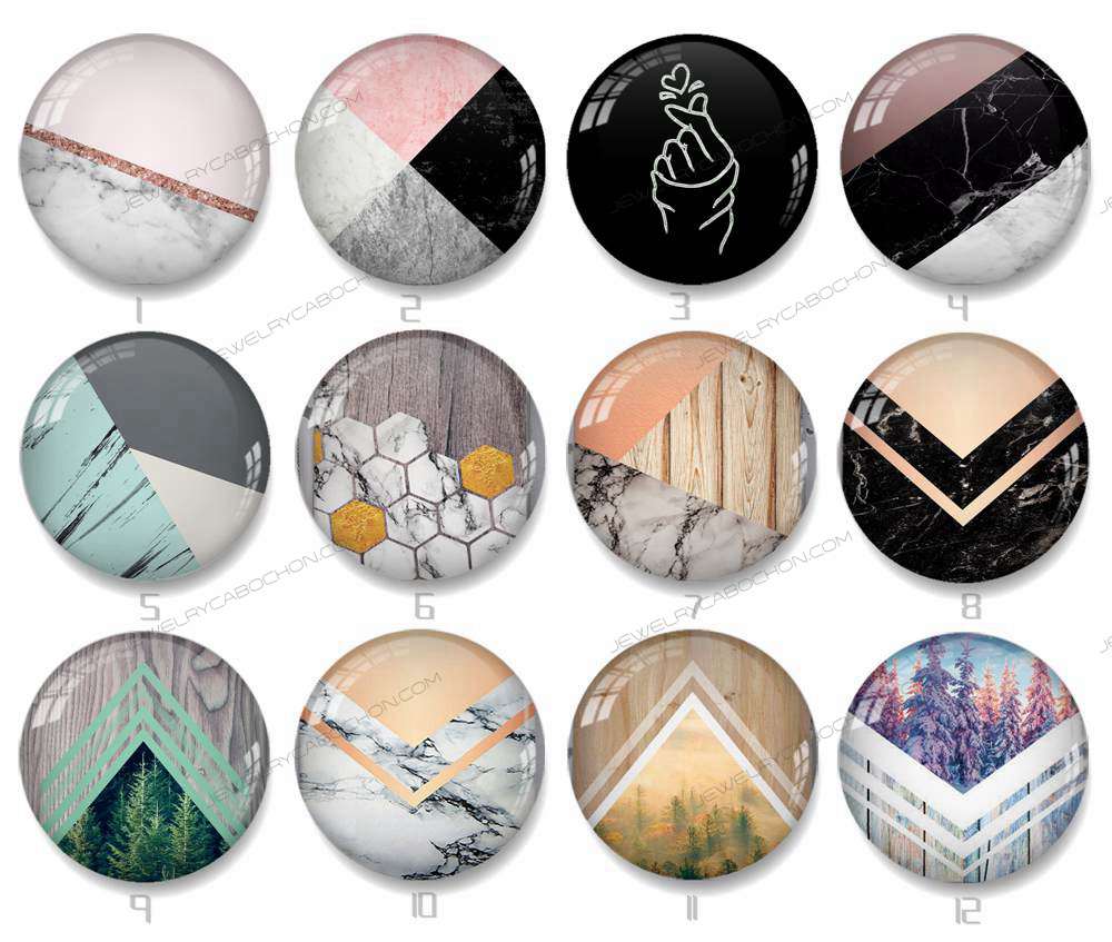 Handmade Round Photo Glass Cabochon geometric pattern 1476B
