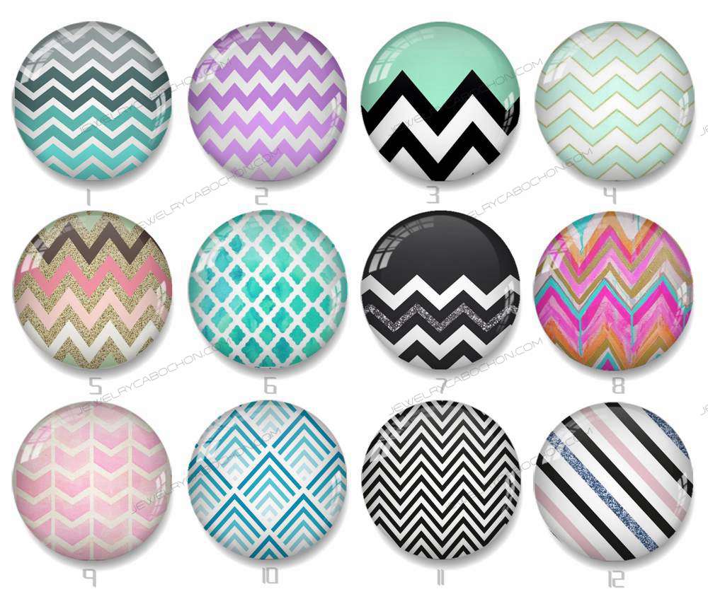 Handmade Round Photo Glass Cabochon geometric stripe 1150B