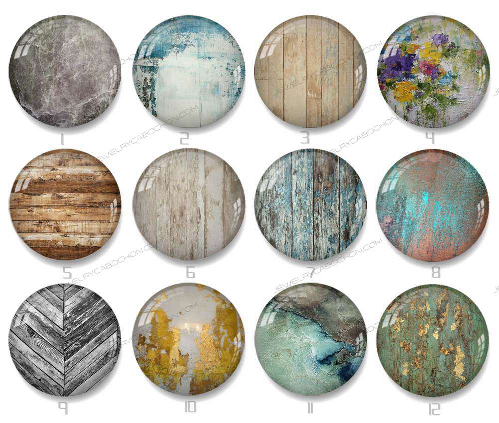 Handmade Round Photo Glass Cabochon geometric Wood grain 1331B