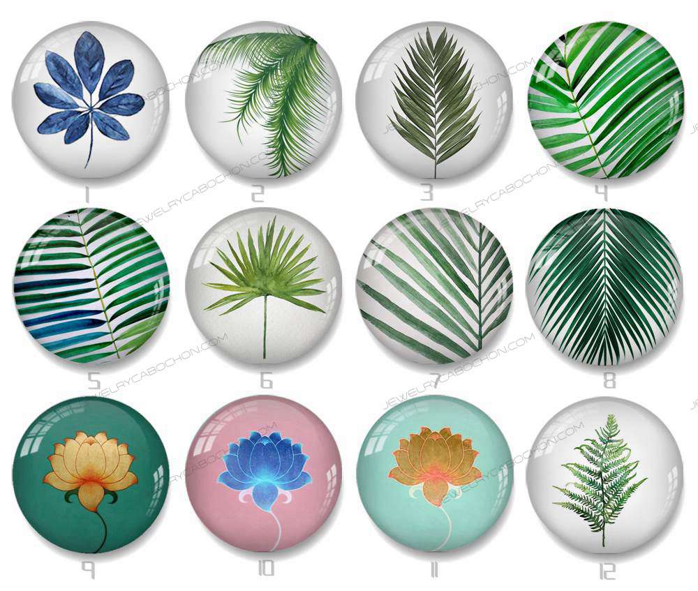 Handmade Round Photo Glass Cabochon Leaves 1126B