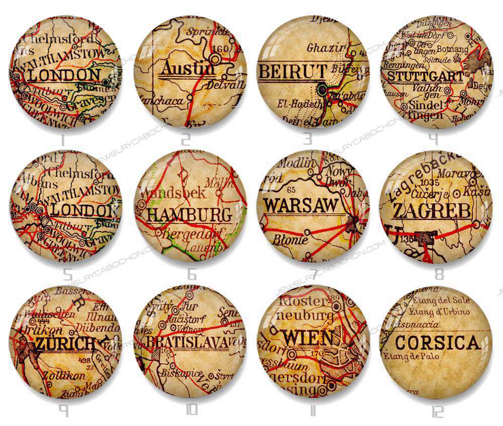 Handmade Round Photo Glass Cabochon map 1297B