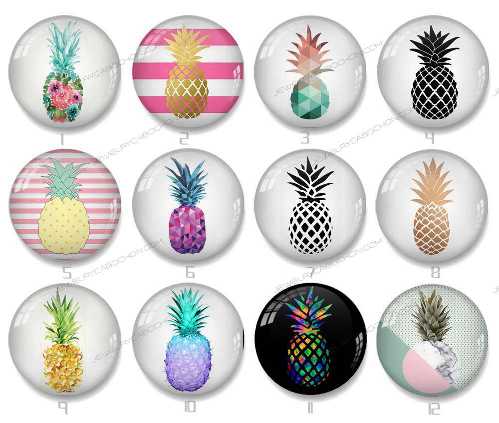 Handmade Round Photo Glass Cabochon pineapple 1046B