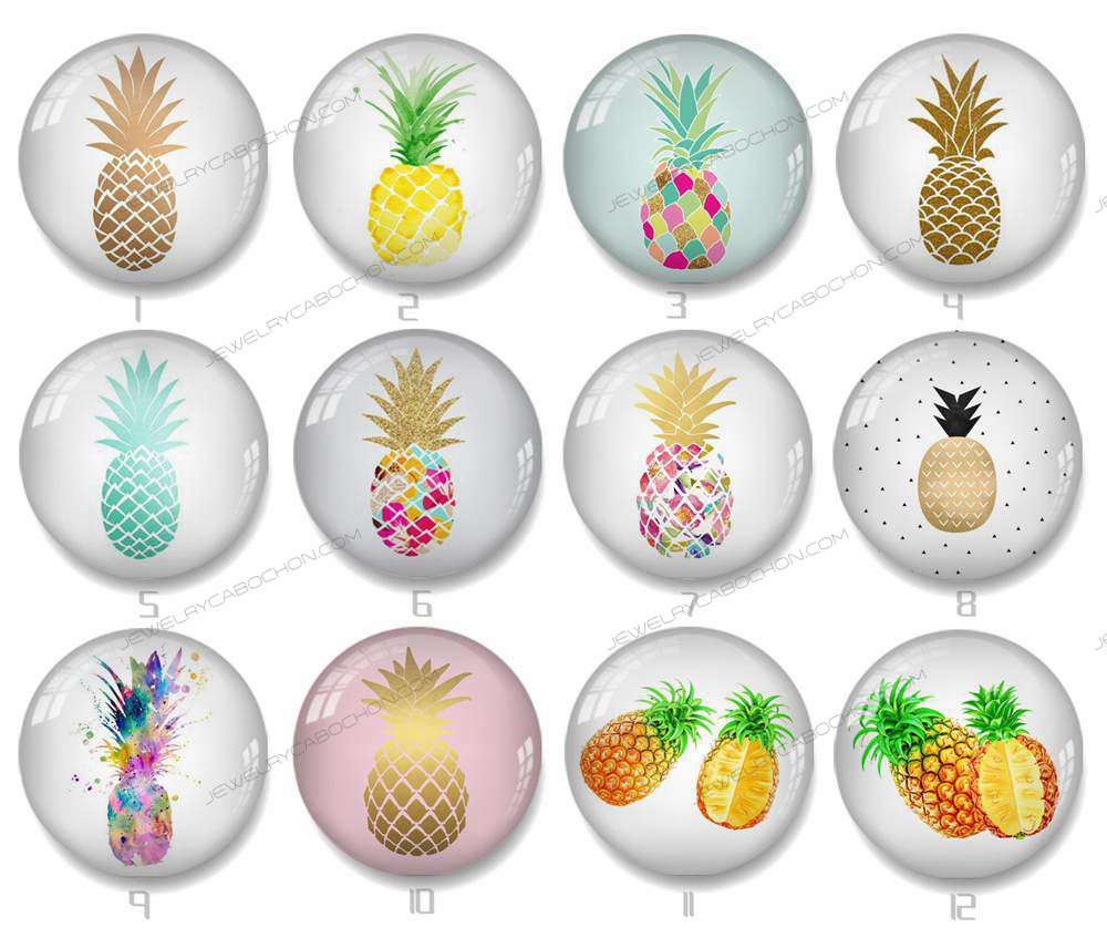 Handmade Round Photo Glass Cabochon pineapple 1047B