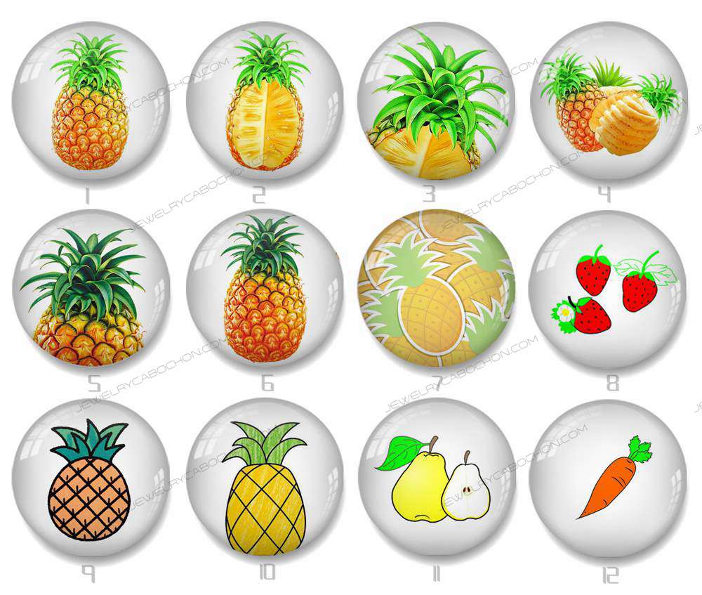 Handmade Round Photo Glass Cabochon pineapple 1048B
