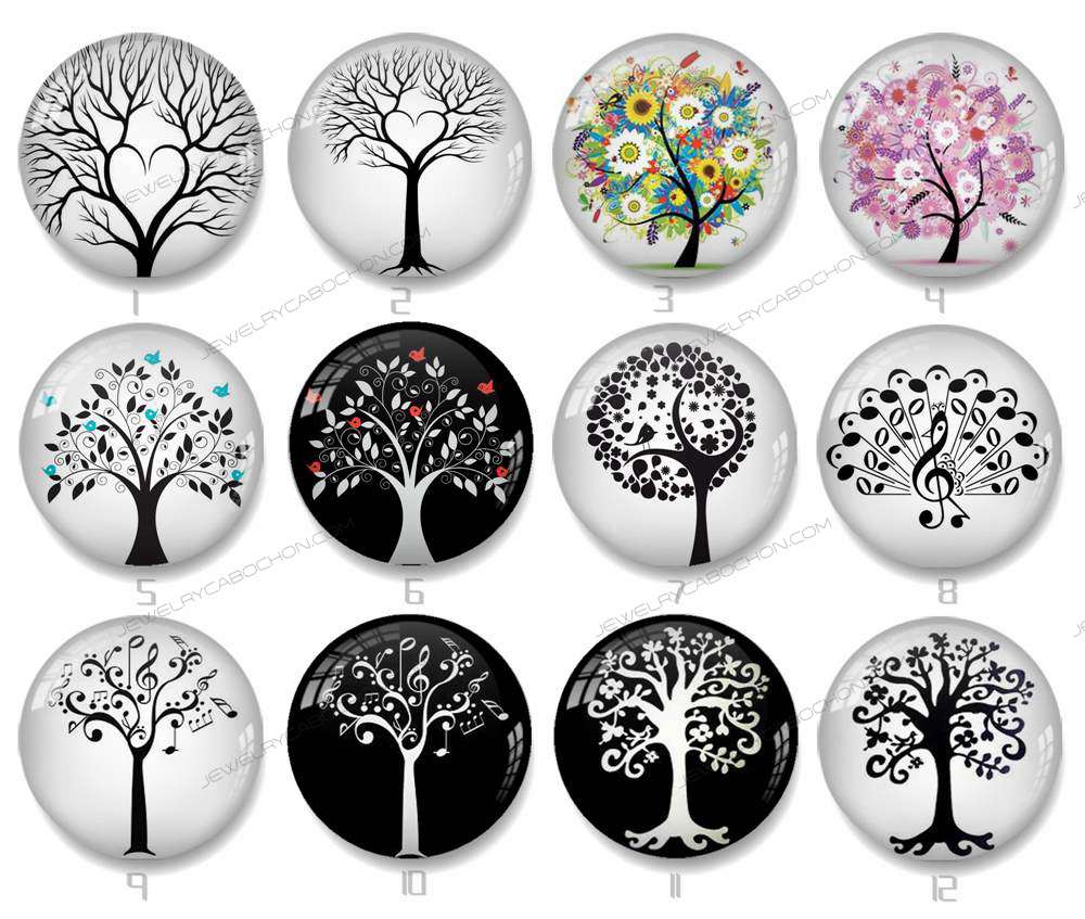 Handmade Round Photo Glass Cabochon plant tree 1478B