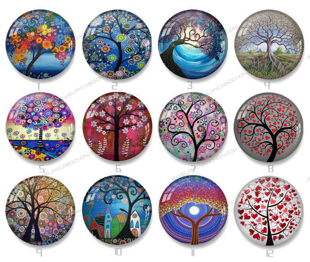 Handmade Round Photo Glass Cabochon plant tree 1481B