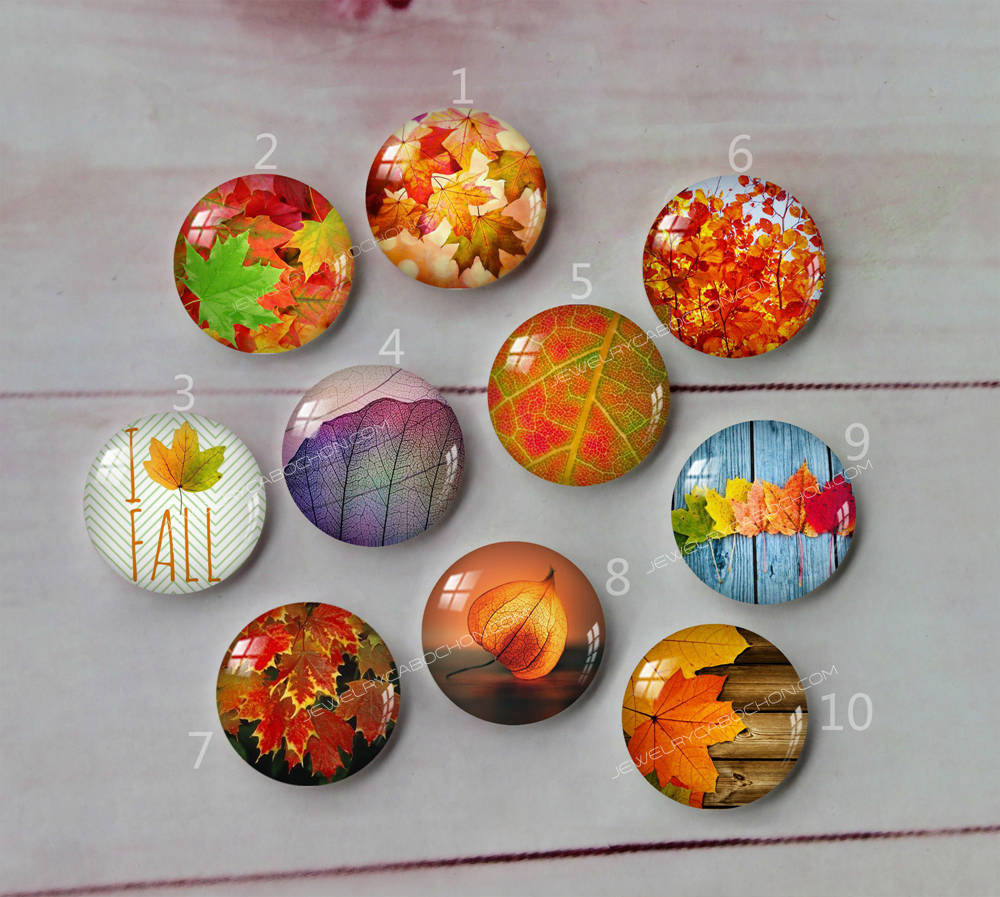 Handmade Round Photo Glass Cabochon tree leaf A484
