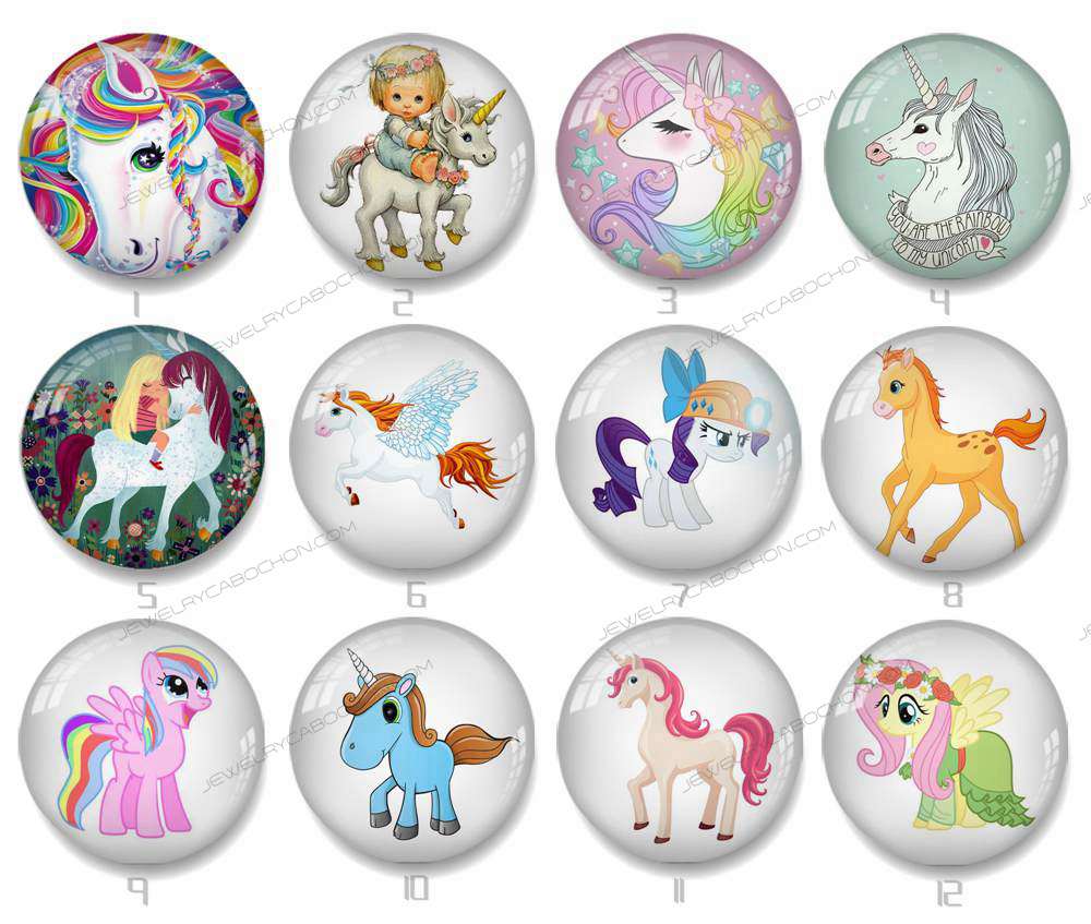 Handmade Round Photo Glass Cabochon unicorn 1294B
