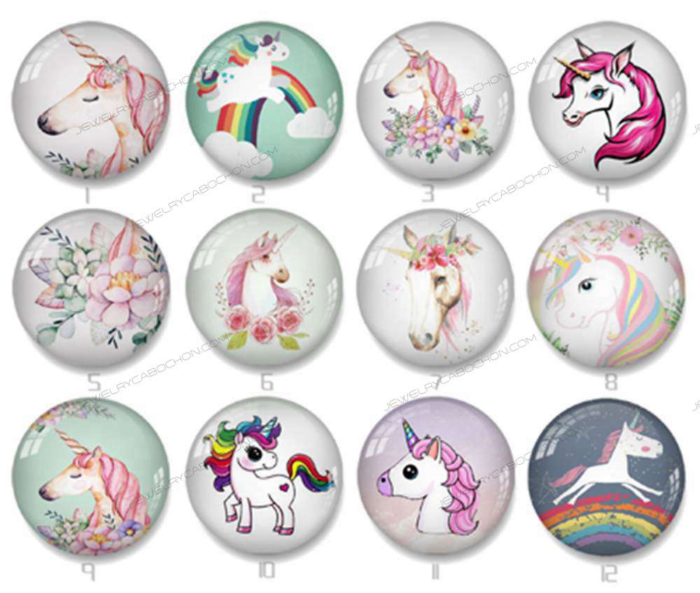 Handmade Round Photo Glass Cabochon unicorn 1425B