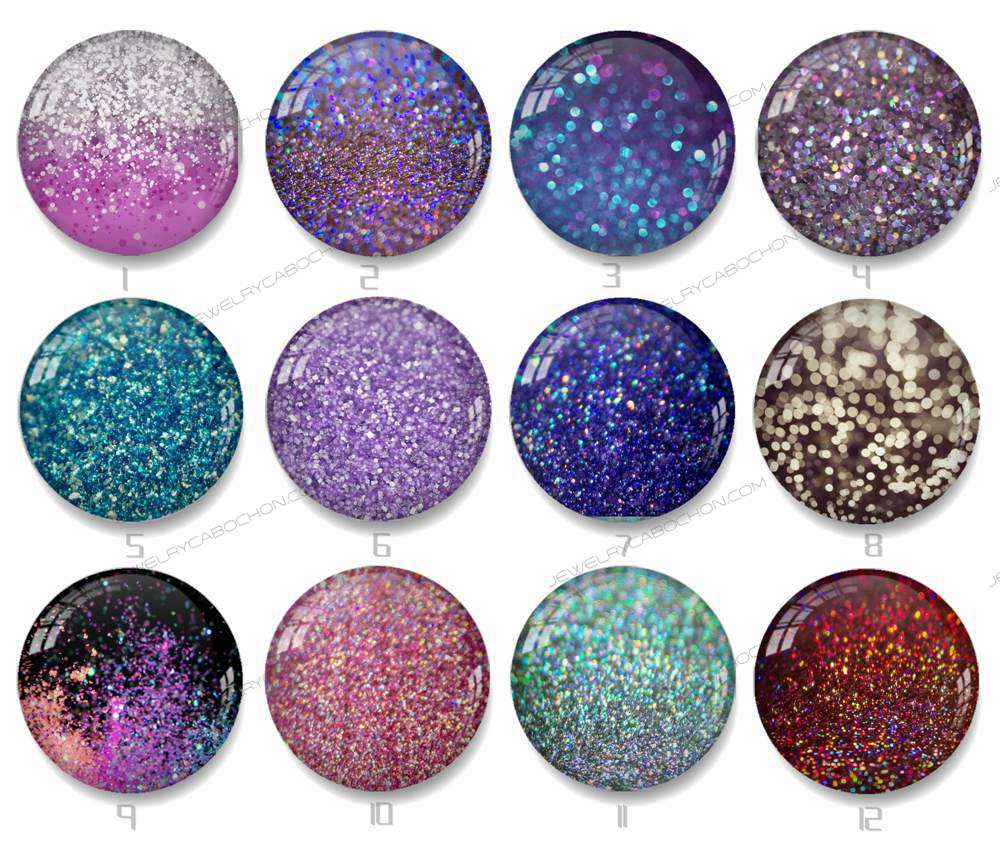 Handmade Round Photo Glass Cabochon Wave point Glitter 1116B