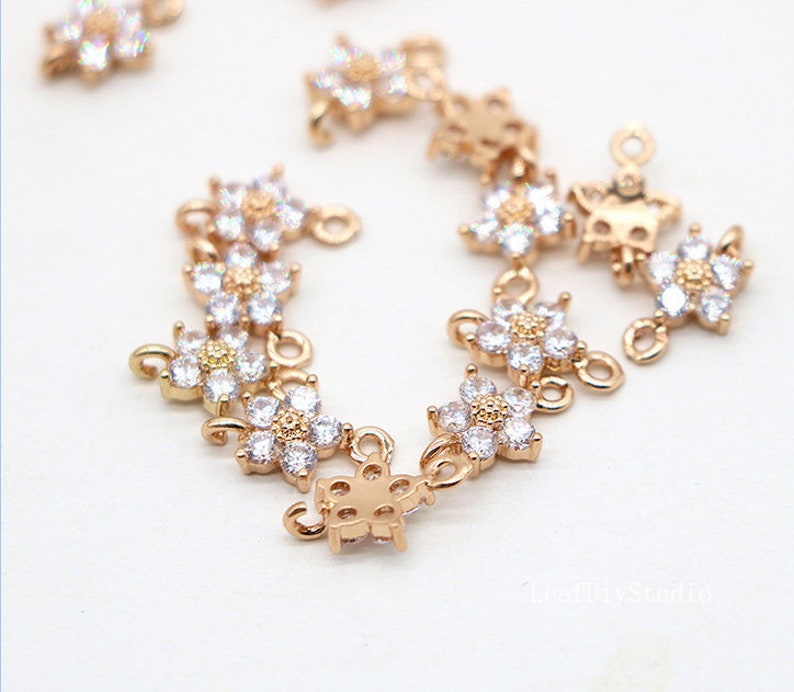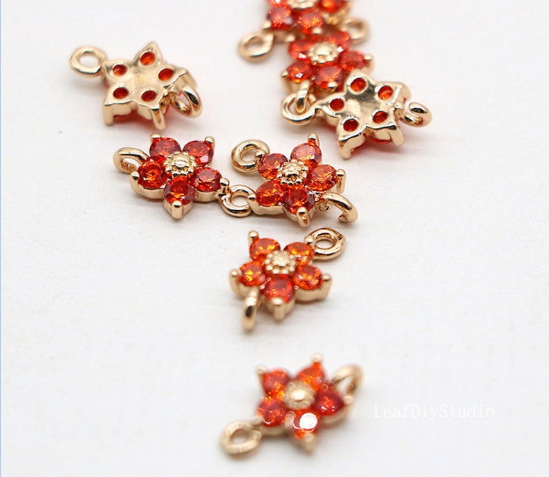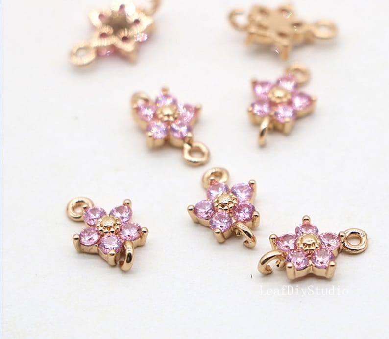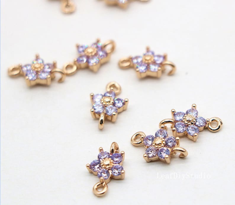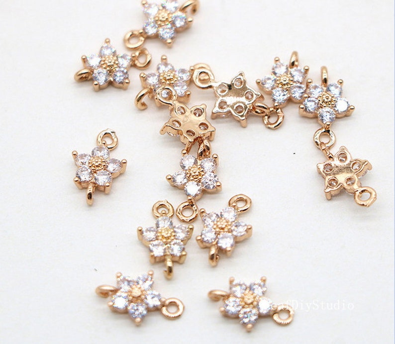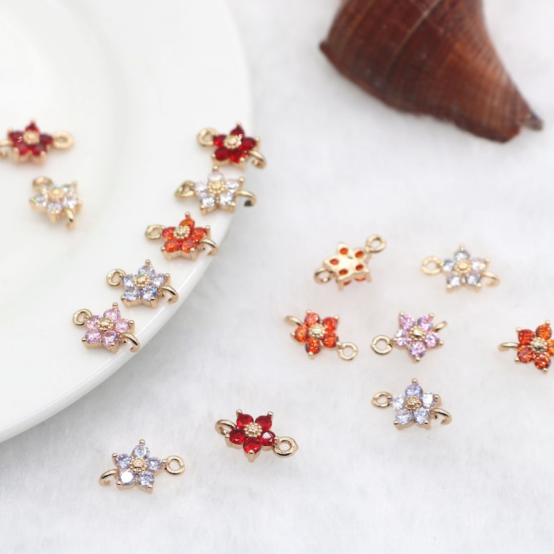 10pcs florets CZ Pave Pendant Charm, 10mm Zircon florets Connector Pendant, Gemstone Charm, Jewelry Making, Material Craft Supplies