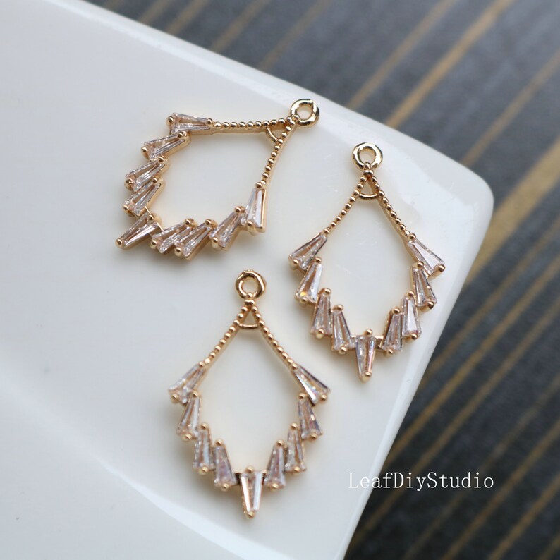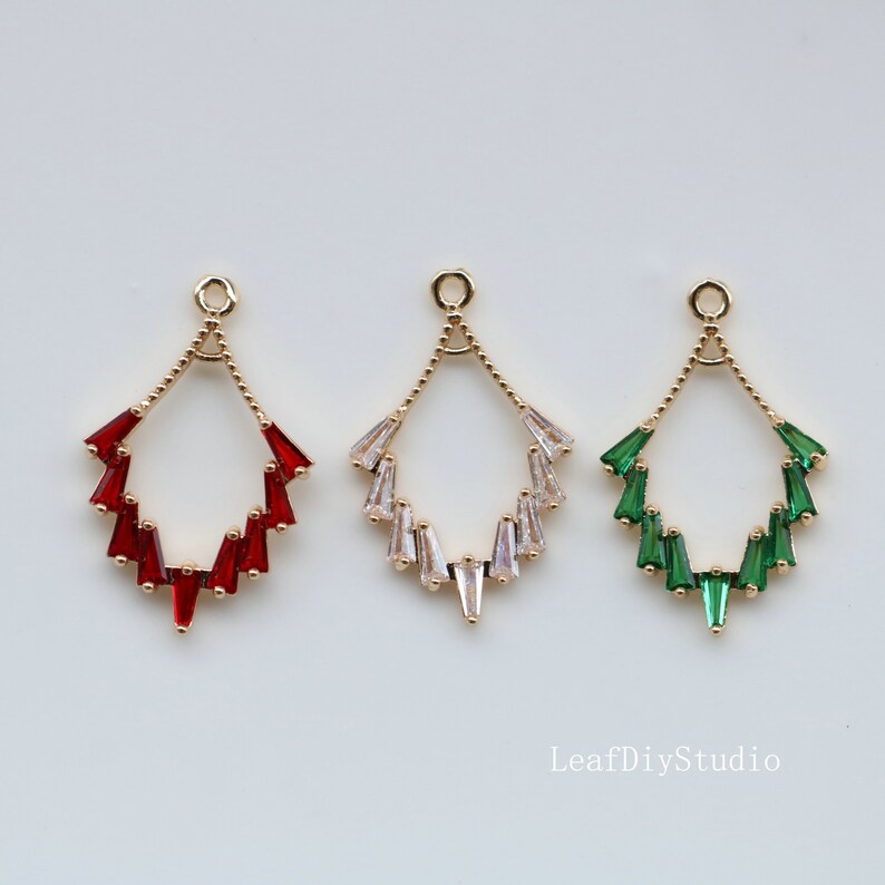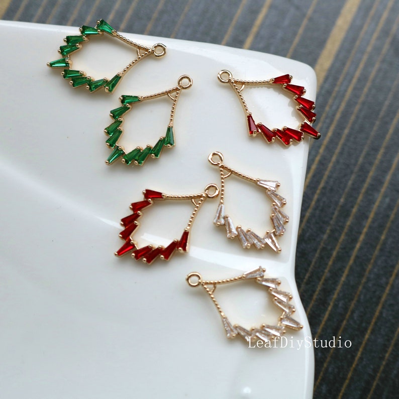10pcs Leaves crystal CZ Pave Charm, zircon Charm Pendant, White red, green Pave Charm, DIY Jewelry Making Supplies