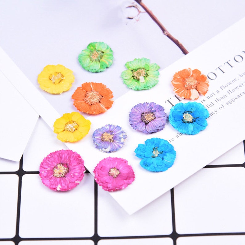 Quantity:12pcs Materials: Dried flowers Size:15-20mm More Dried pressed flowershttps://www.etsy.com/hk-en/shop/KellyStudiojewelry?section_id=34126247