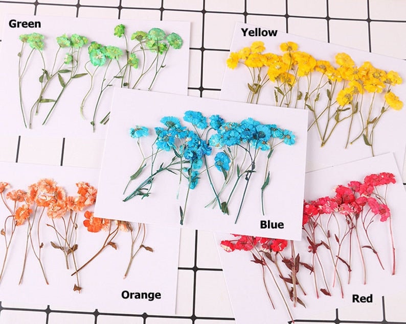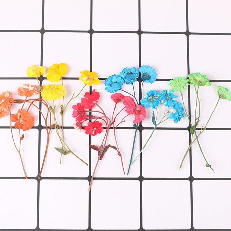 Quantity : 12pcs Material: Dried flowers Size: 10mm; The whole branch: 70mm Color:Reference photo More Dried pressed flowershttps://www.etsy.com/hk-en/shop/KellyStudiojewelry?section_id=34126247