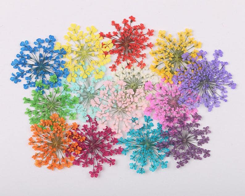 12pcs/pack Queen Annes Lace Dried Pressed Flowers, Handmade Crafting Genuine Botanical Jewelry