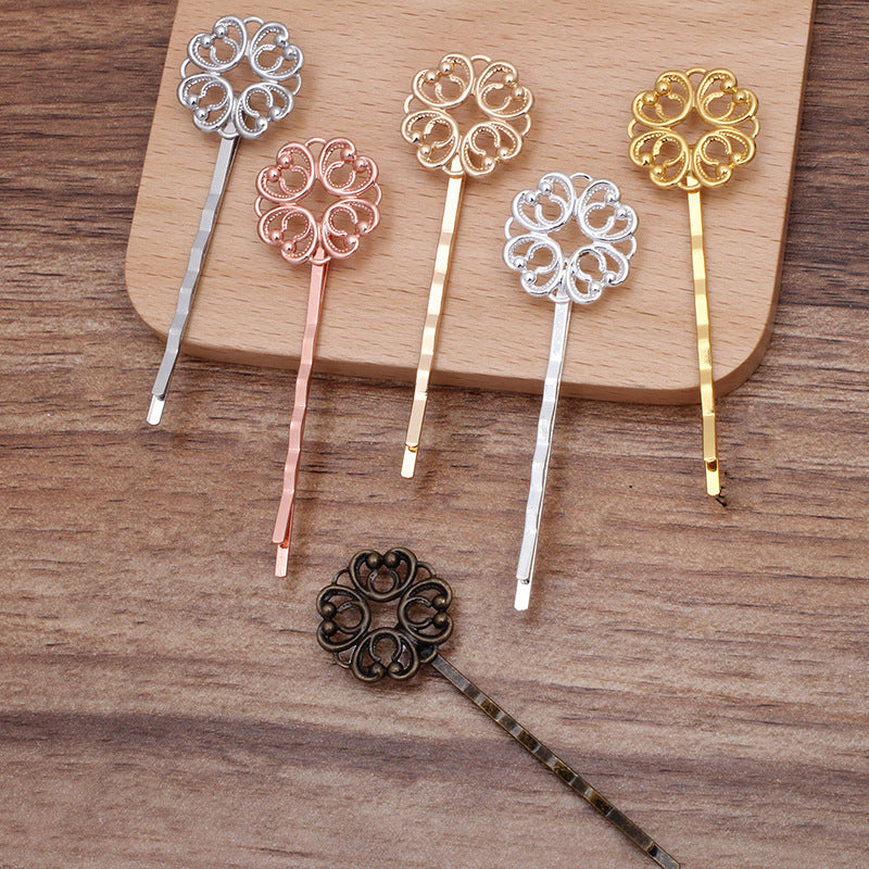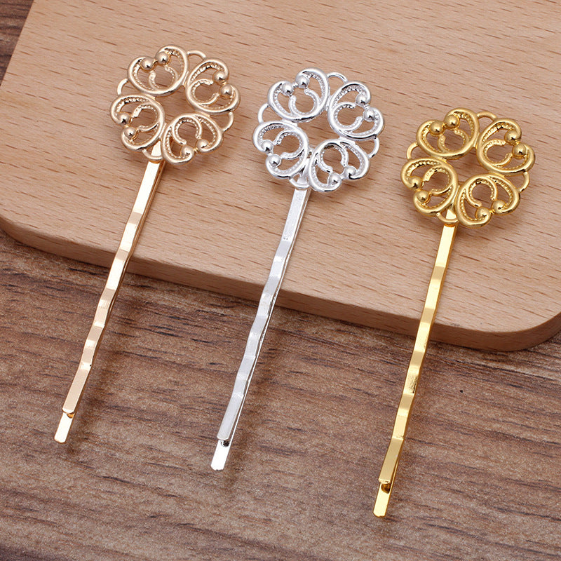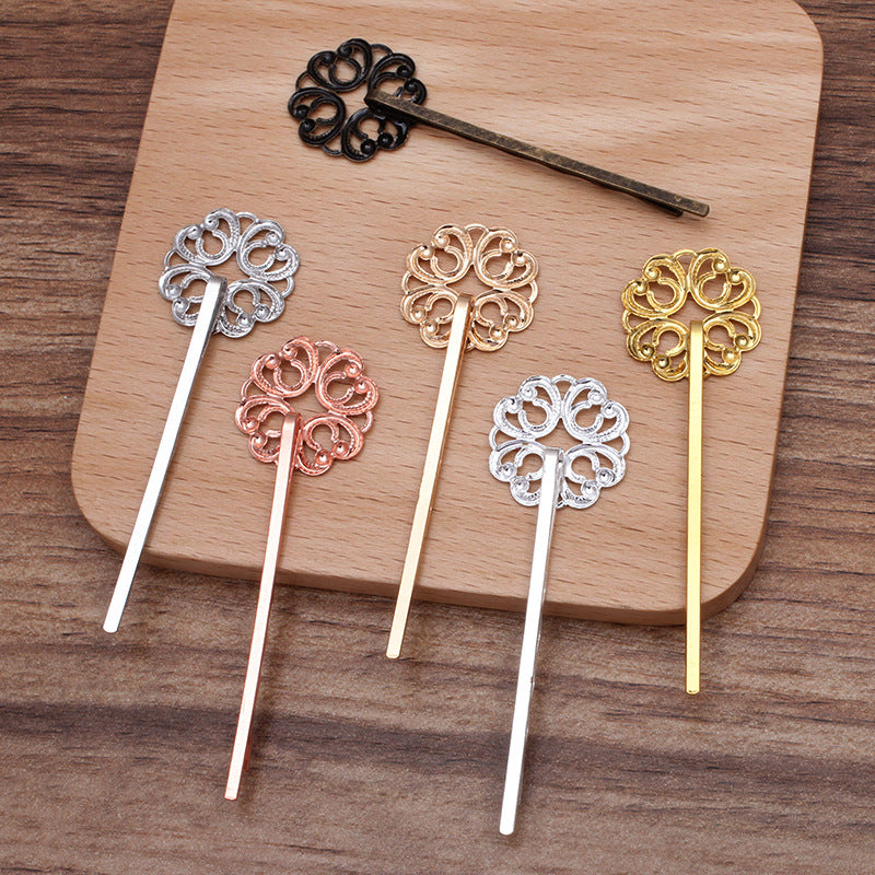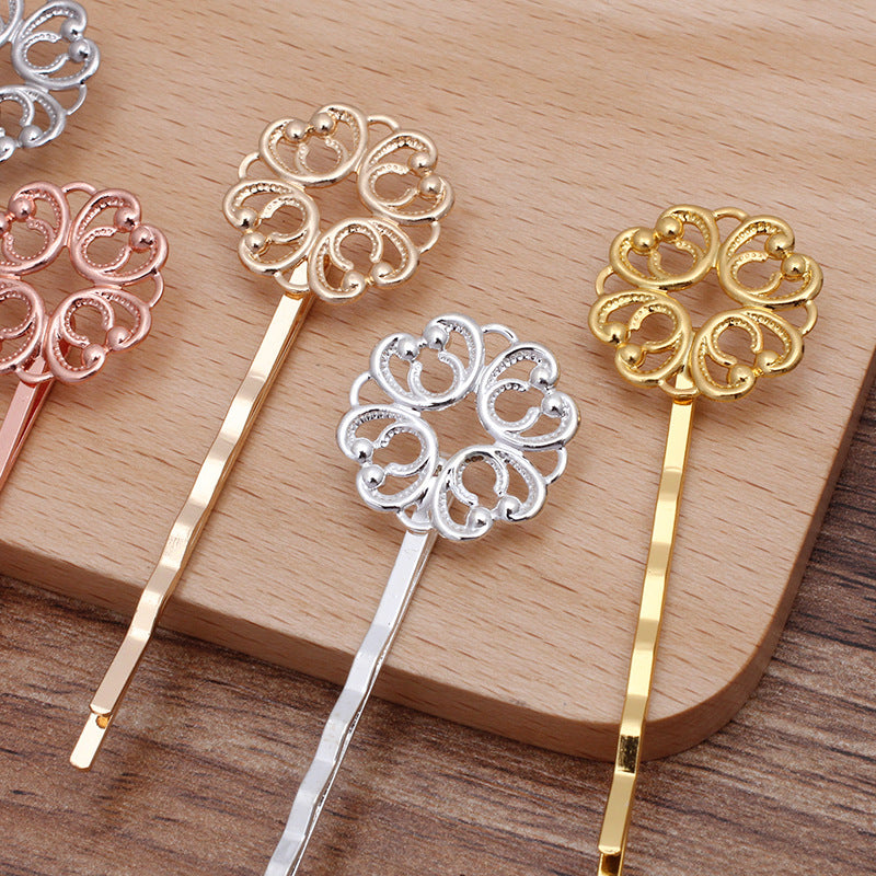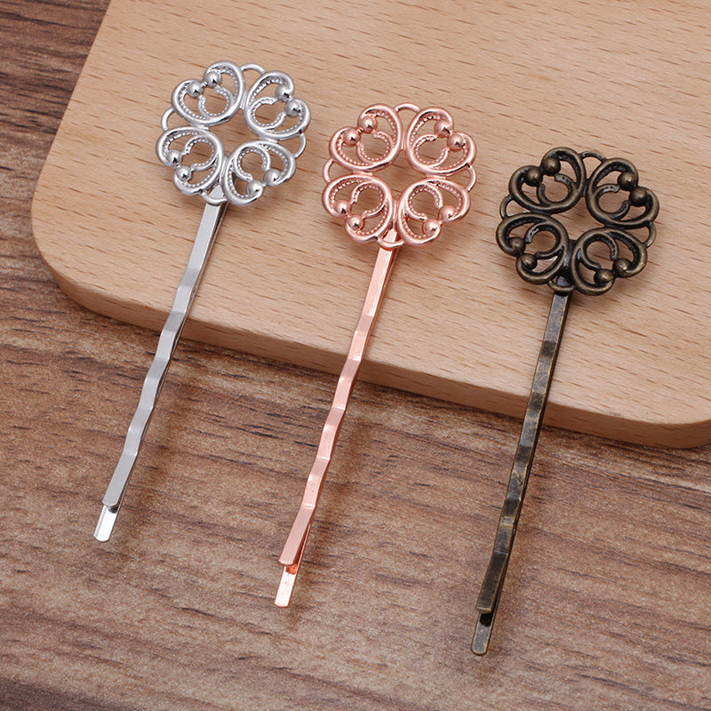 20pcs Bobby Pins Leaves Flower Filigree Pad, Flower Hair Findings,Hair Accessories