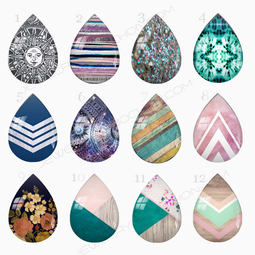 Handmade Teardrop Photo Glass Cabochons geometric Chevron 32