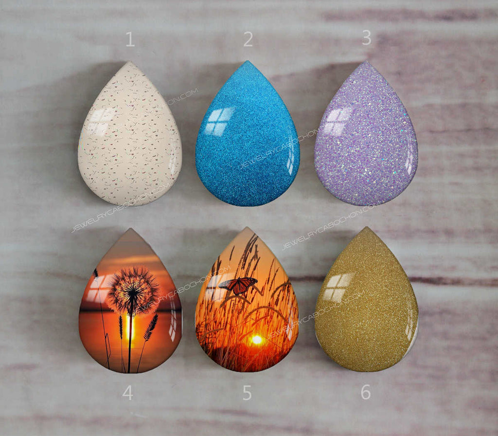 Handmade Teardrop Photo Glass Cabochons Geometry Glitter A446