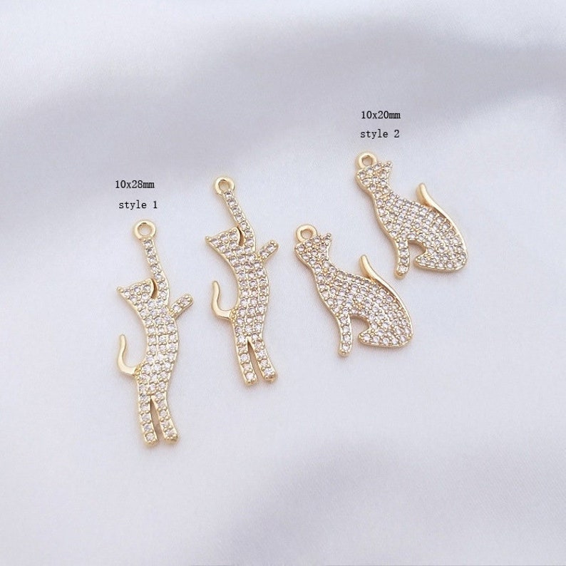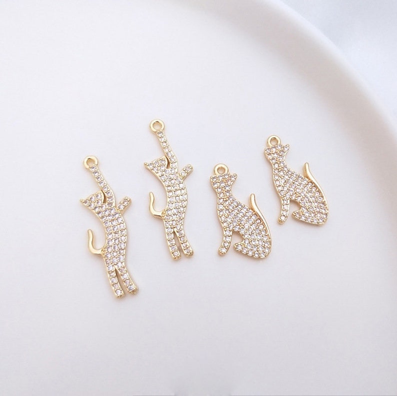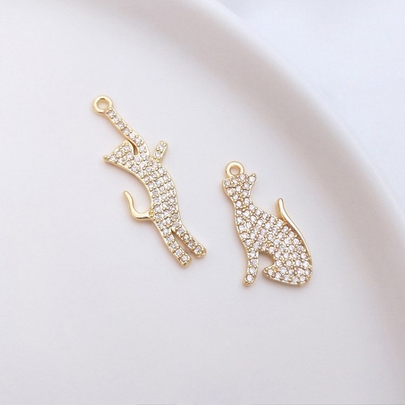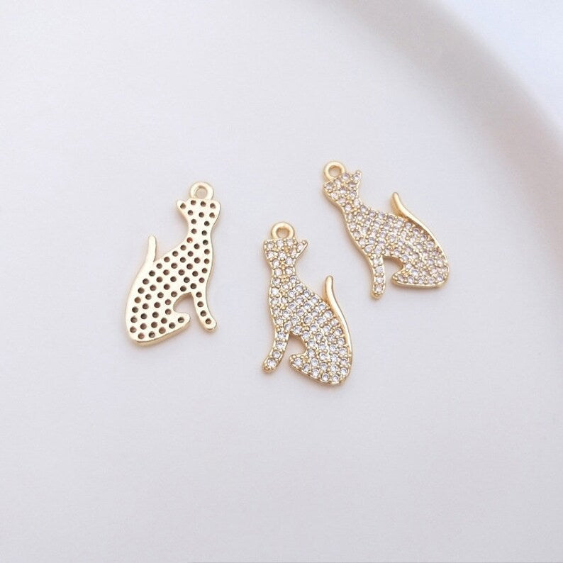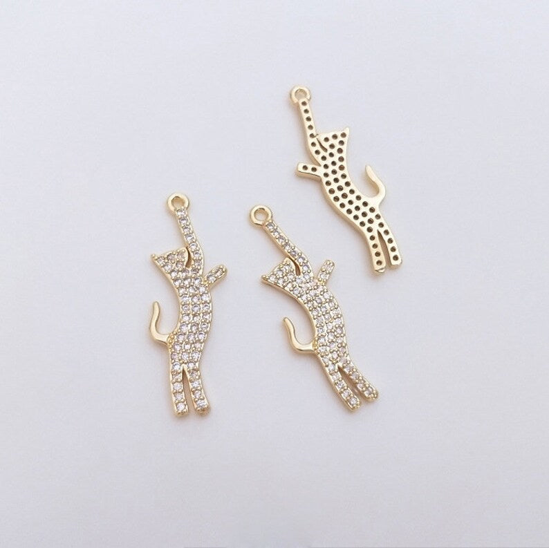 10pc cat Zircon Pendant Charm, cat CZ Pave Connector Pendant, DIY Finding Jewelry