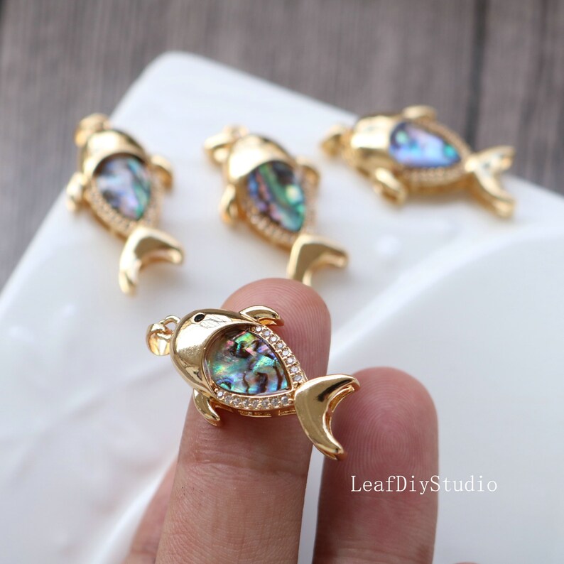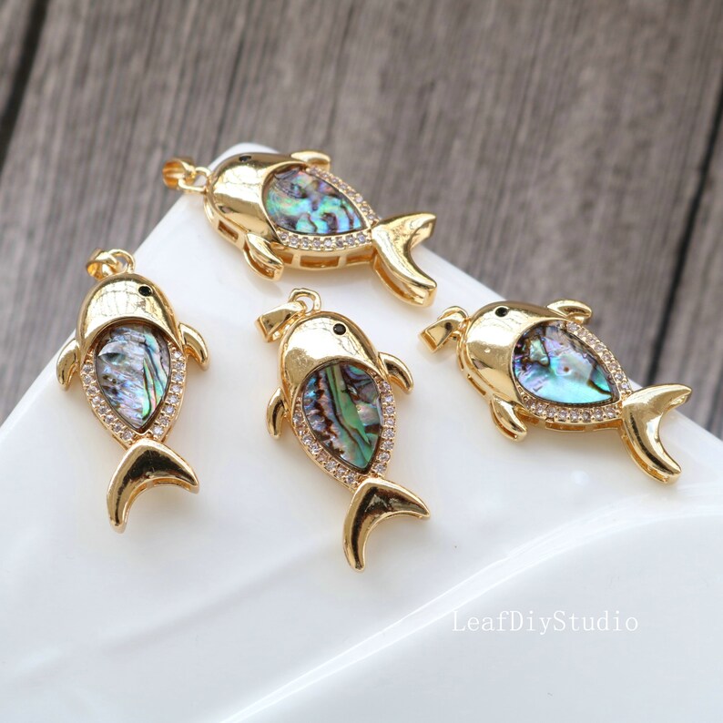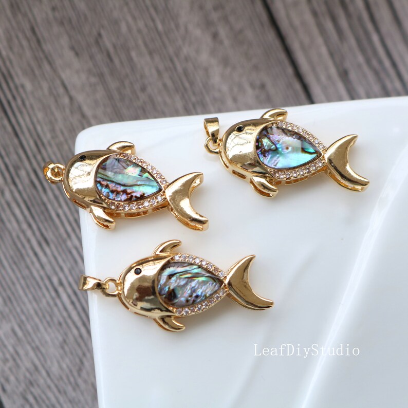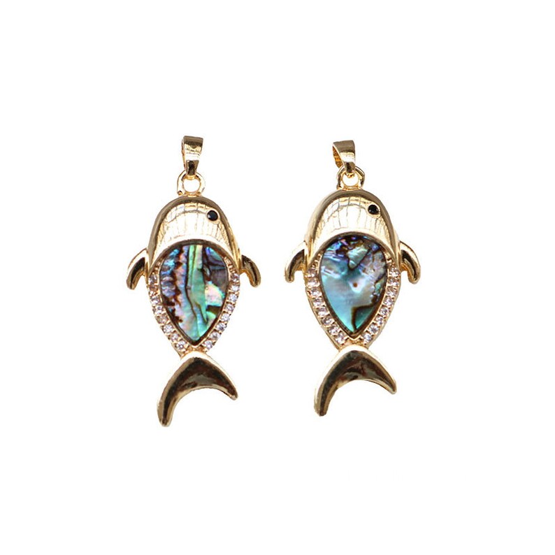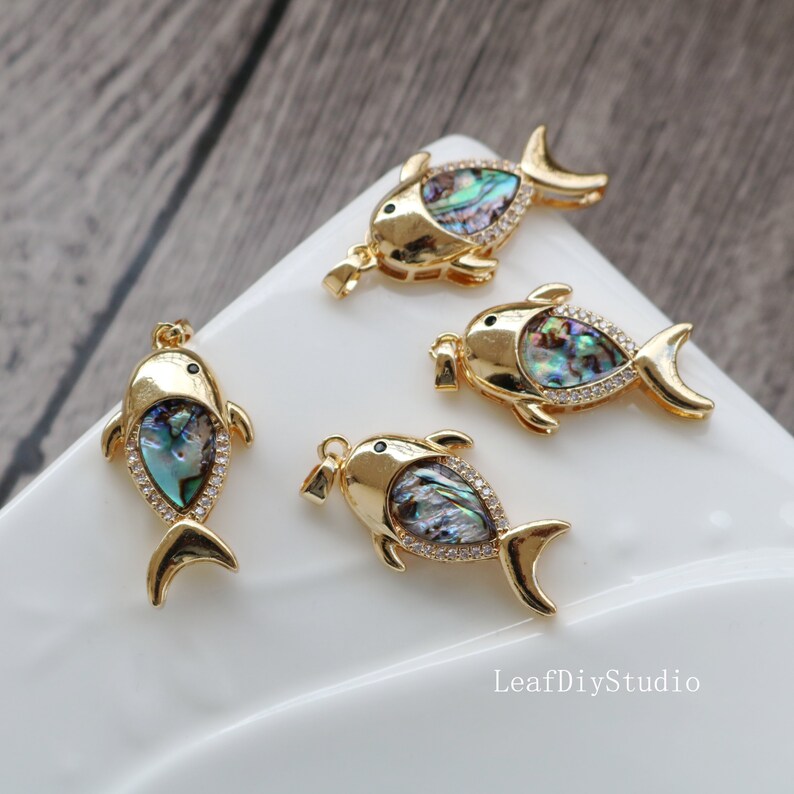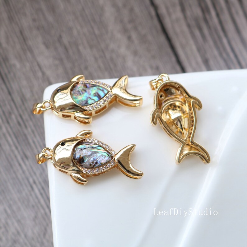 10pcs CZ Pave fish shell Charm, Zircon shell Pendant, fish Charm, 16.5x32mm Jewelry Making, Material Craft Supplies