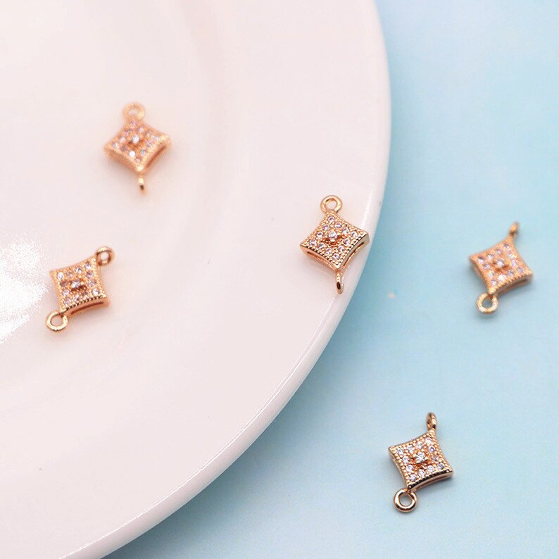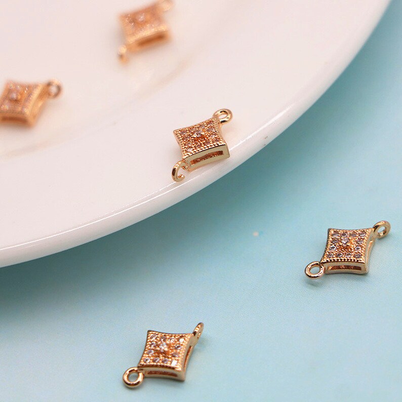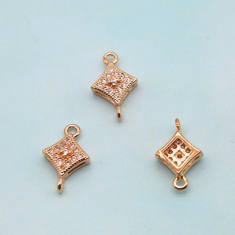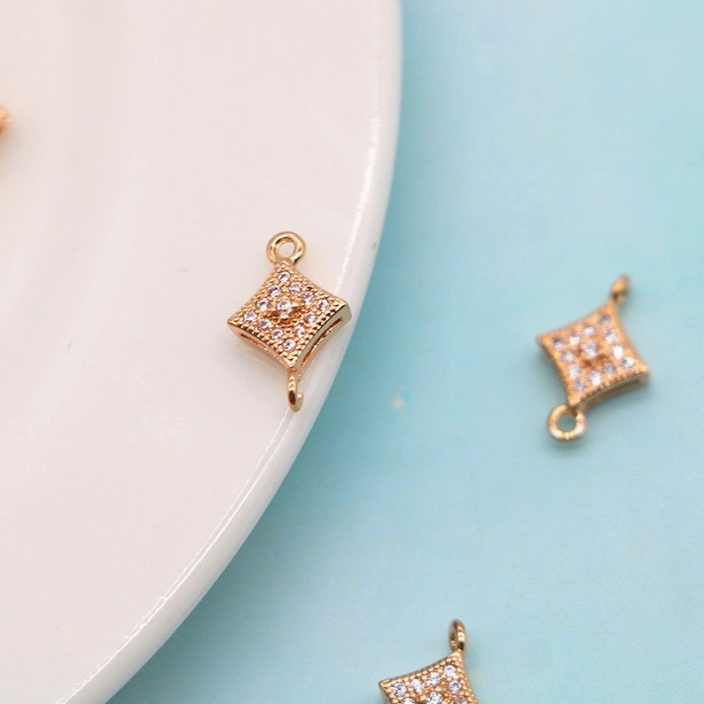 10pcs cz pave flower charm, six petal flower bracelet necklace pendant, brass gold plated, pave charm, Material Craft Supplies