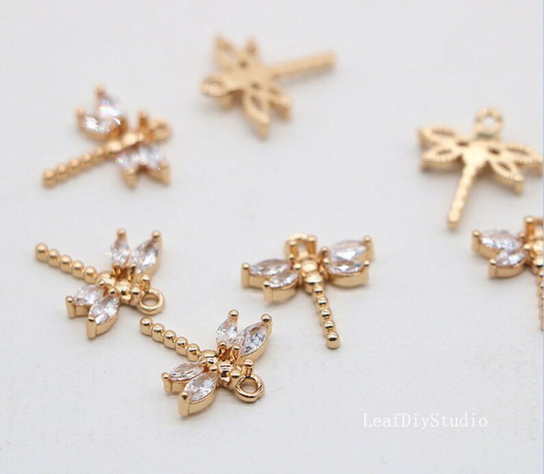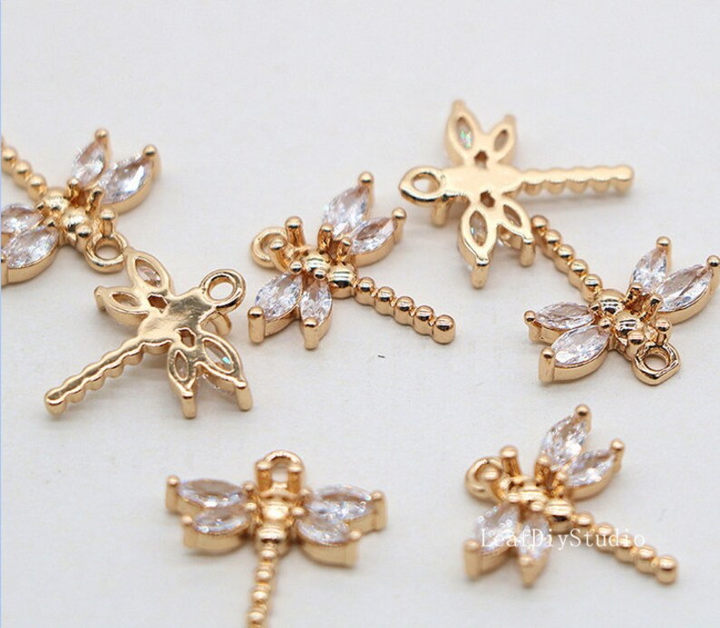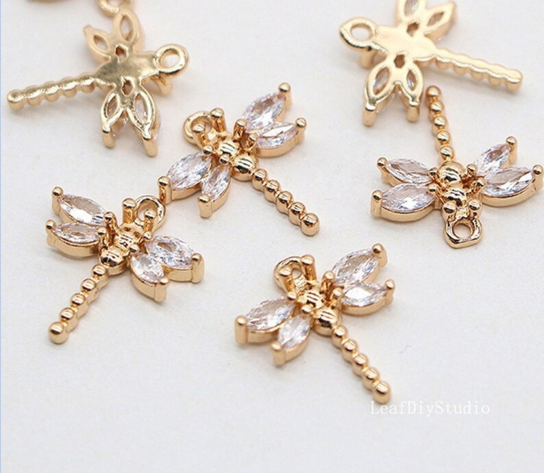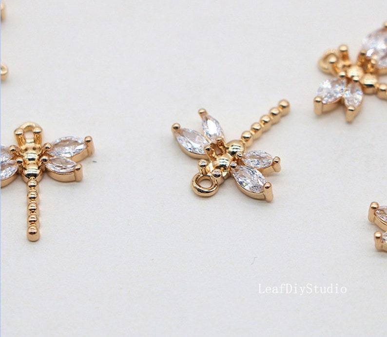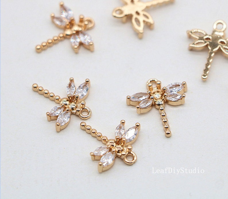 10pcs CZ Pave Small dragonfly Charm, 13x14mm CZ Zircon dragonfly Pendant, Zircon Jewelry Making, Zircon Material Craft Supplies