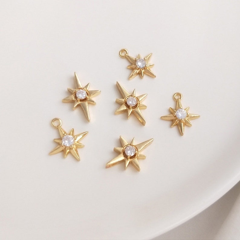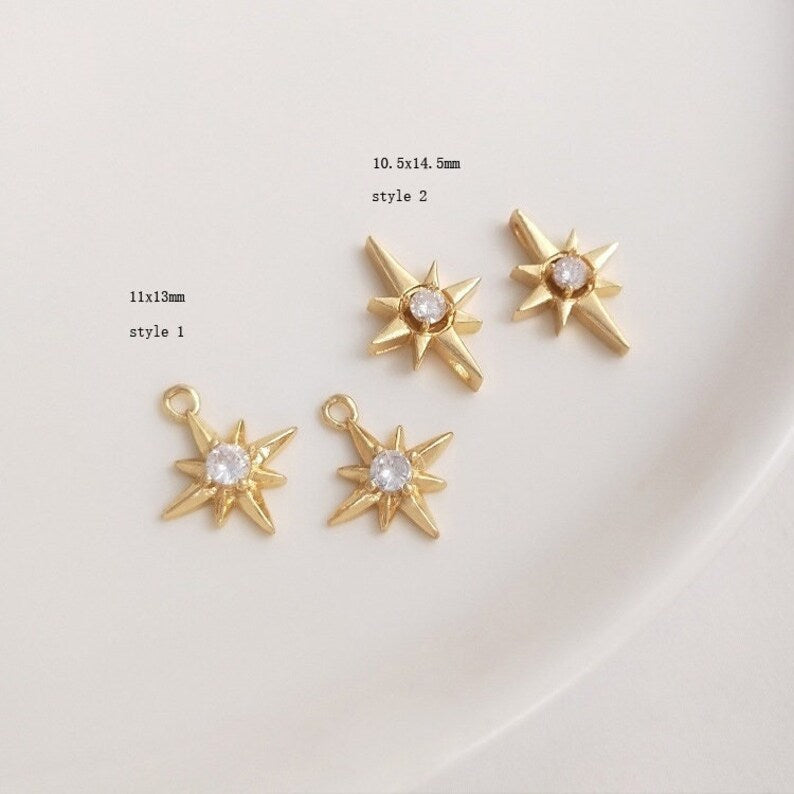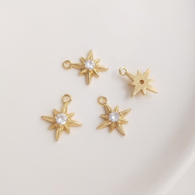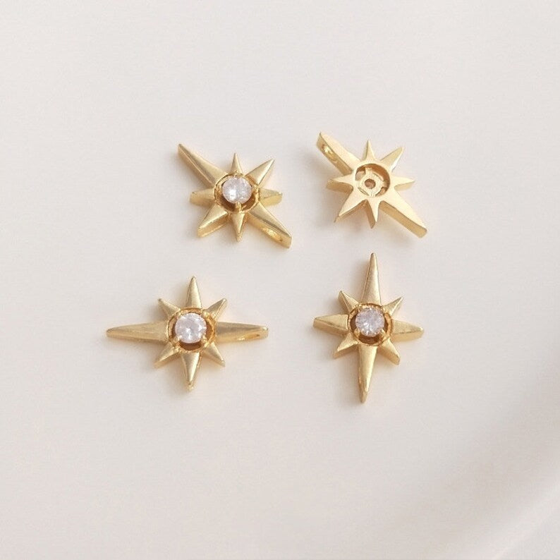 10pcs eight-pointed star CZ Paved bee Charm, Gold Plated Brass Earring Findings, shape cubic charm, zirconia pendant