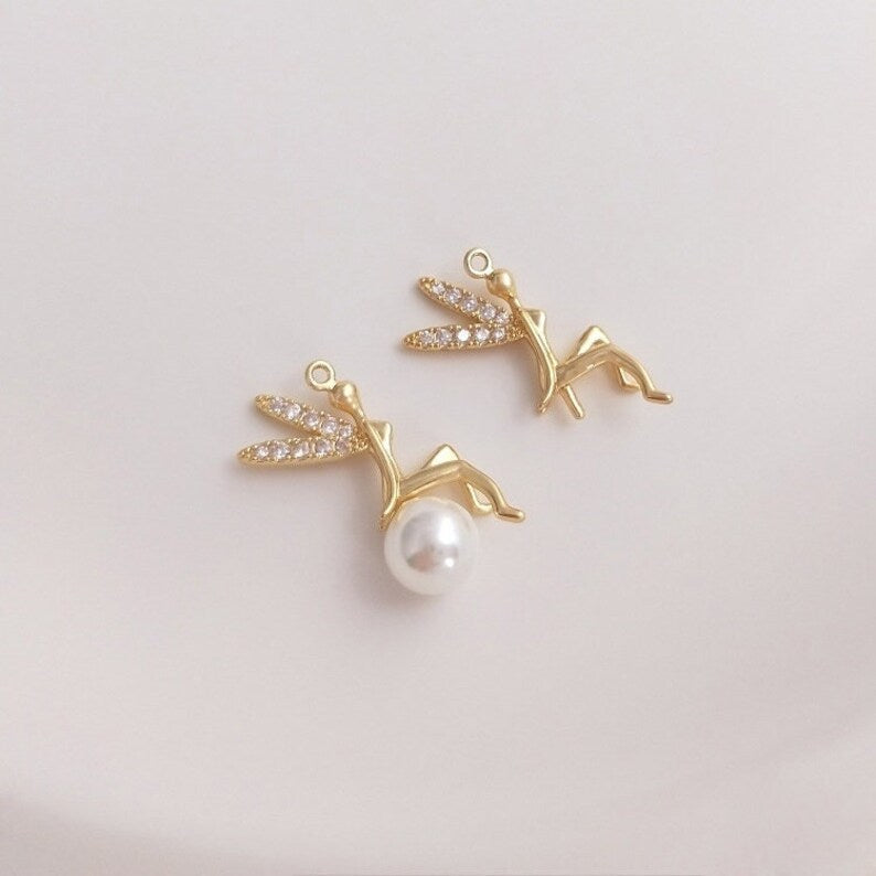 deer CZ Pave Charm, Zircon Pendant, Jewelry Making, DIY earrings necklace pendant Jewelry Making, half hole needle, 10pcs