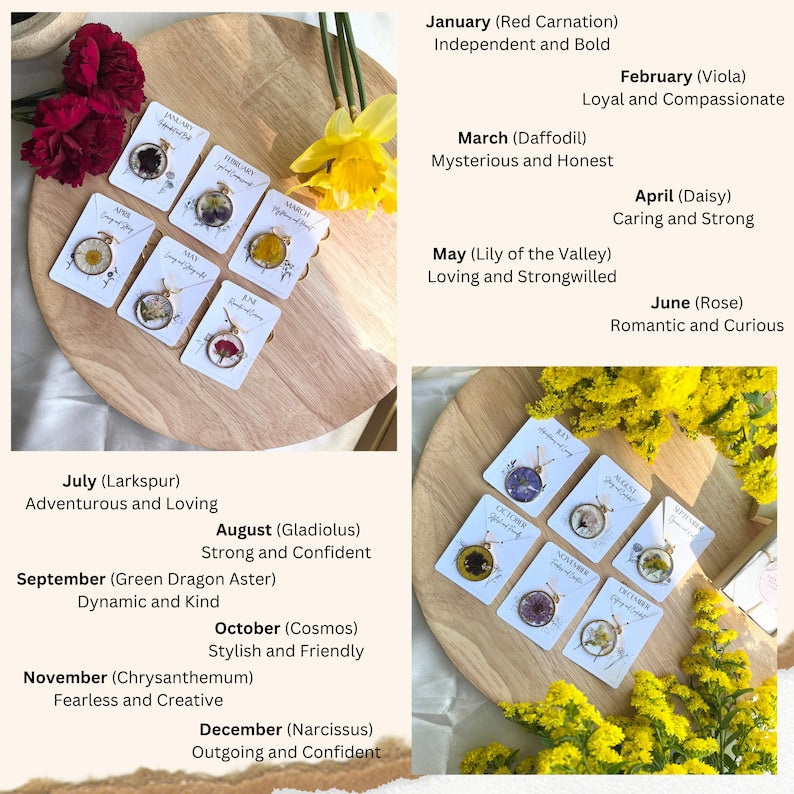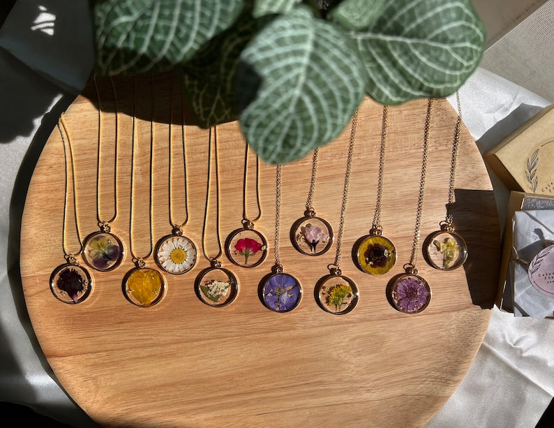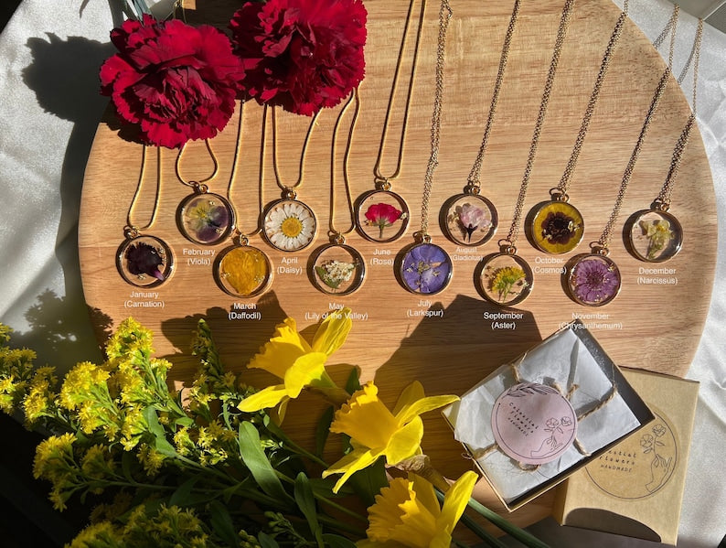 Handmade | Birth Month Real Flower Necklace | Personalized | Wedding | Hand Pressed | Anniversary | Bridesmaid | Gift for her | Birthday