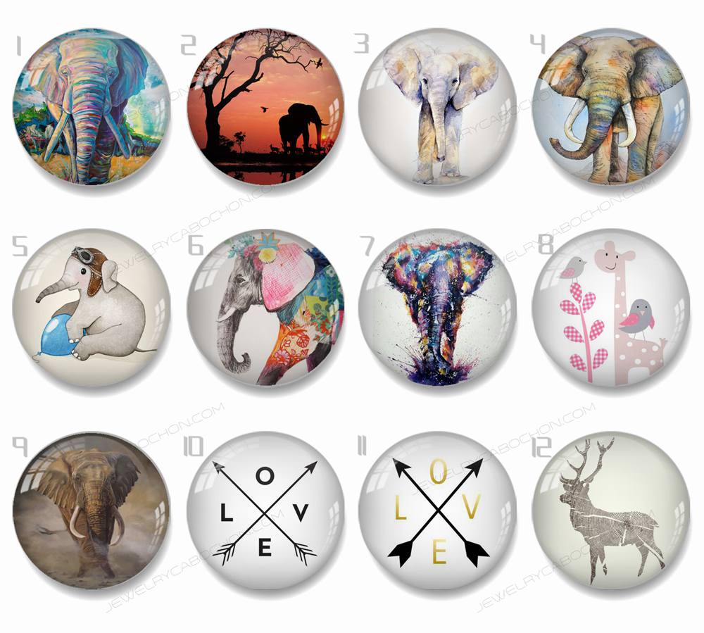 Handmade Round Photo Glass Cabachons Animal elephant 992B