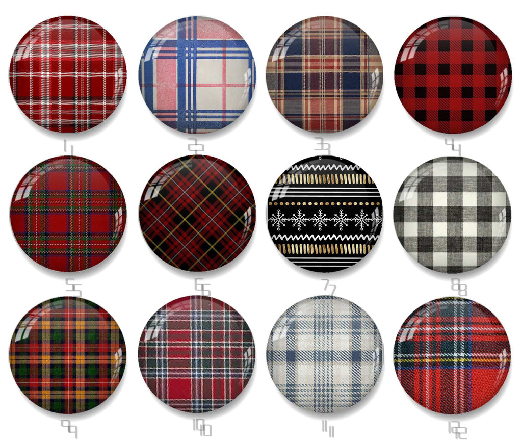 Handmade Round Photo Glass Cabochon Checkered 2498B