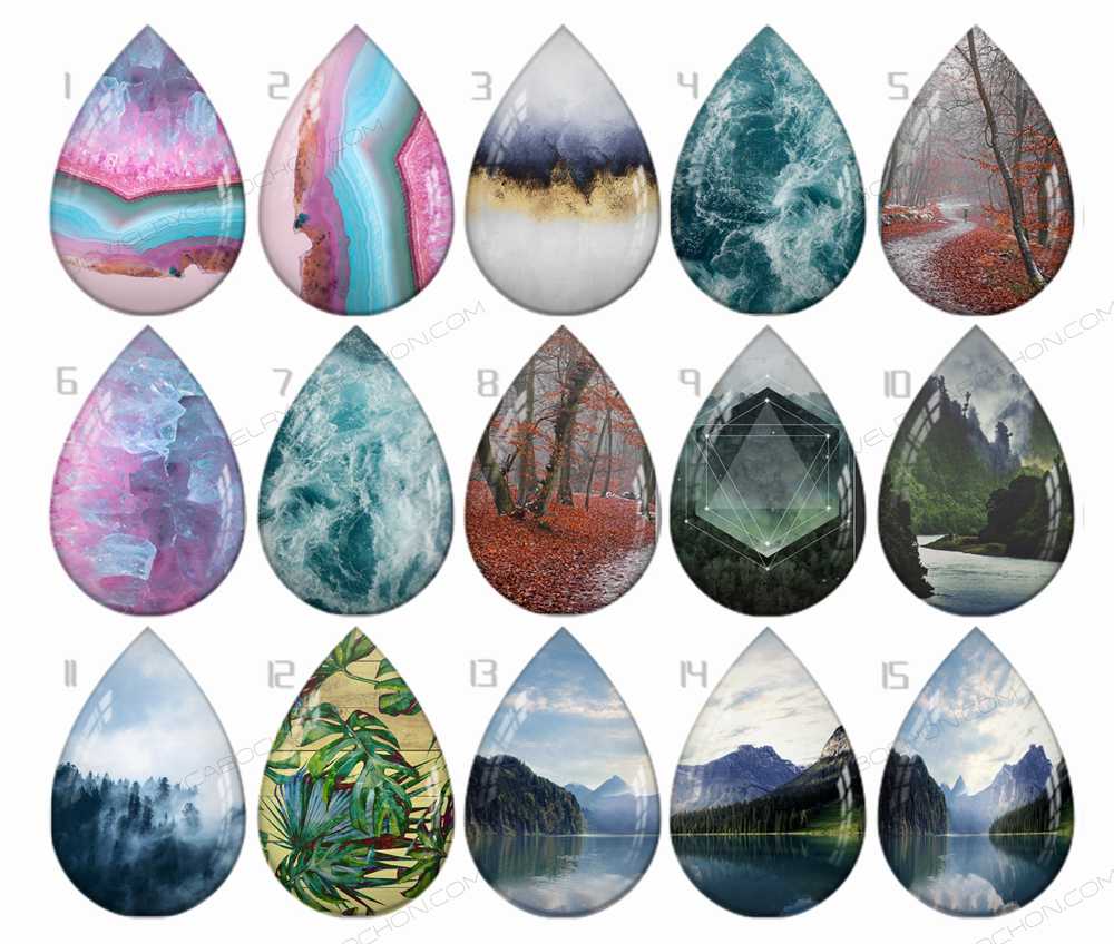 Handmade Teardrop Photo Glass Cabochons B536