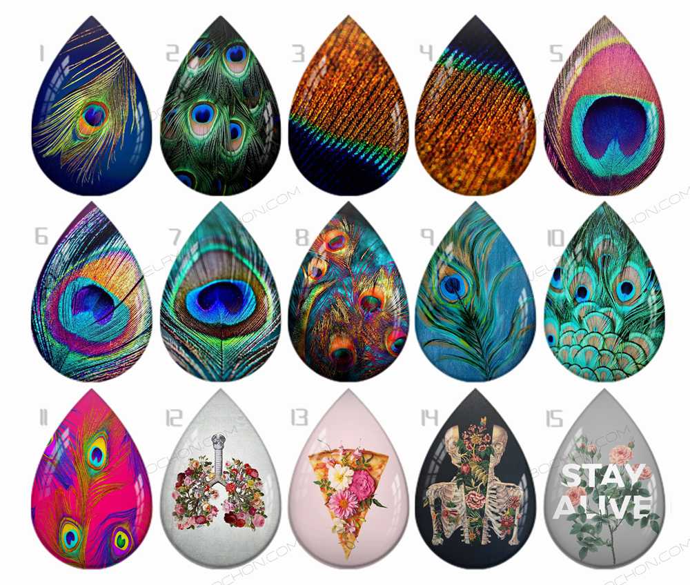 Handmade Teardrop Photo Glass Cabochons feather B569