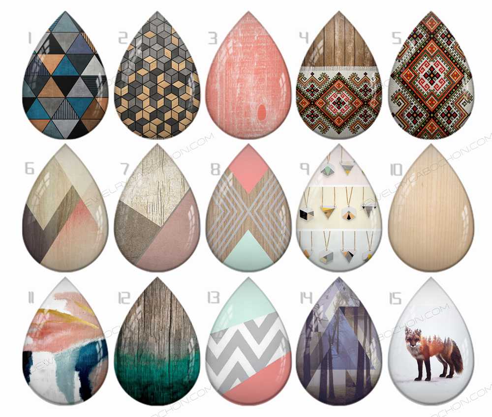 Handmade Teardrop Photo Glass Cabochons geometric B550