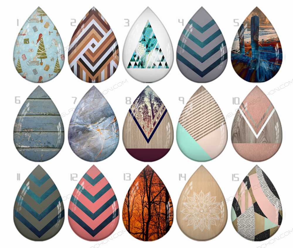 Handmade Teardrop Photo Glass Cabochons geometric B551