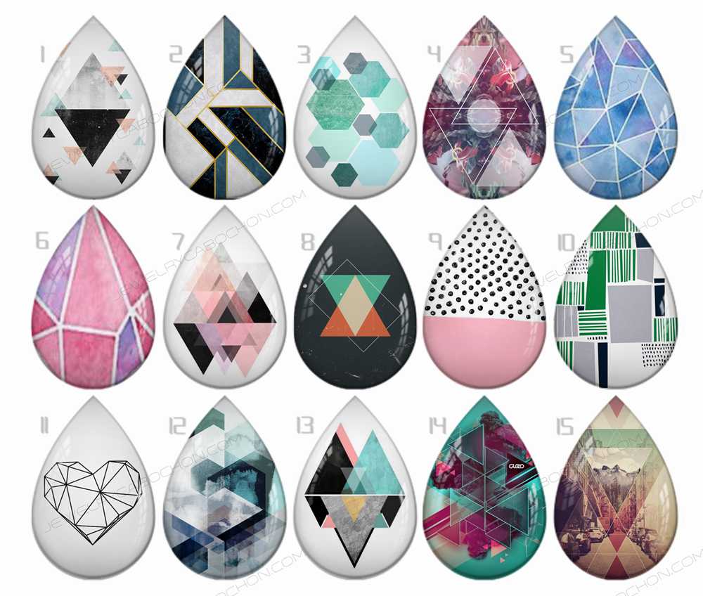 Handmade Teardrop Photo Glass Cabochons geometric B558