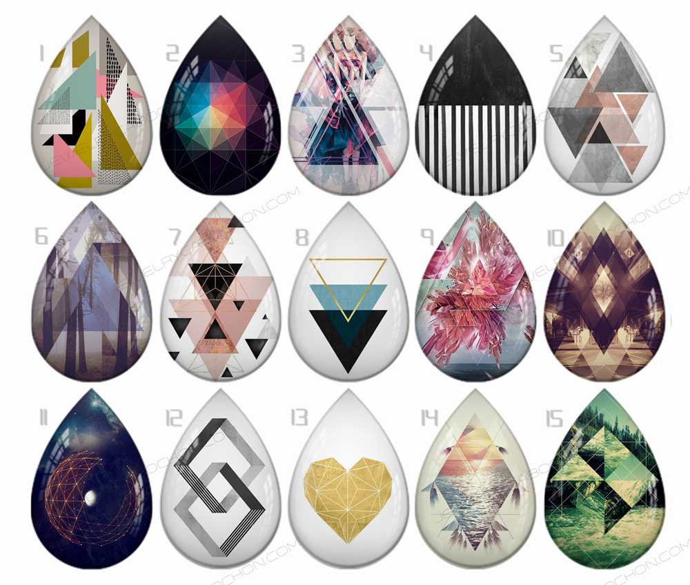 Handmade Teardrop Photo Glass Cabochons geometric B562