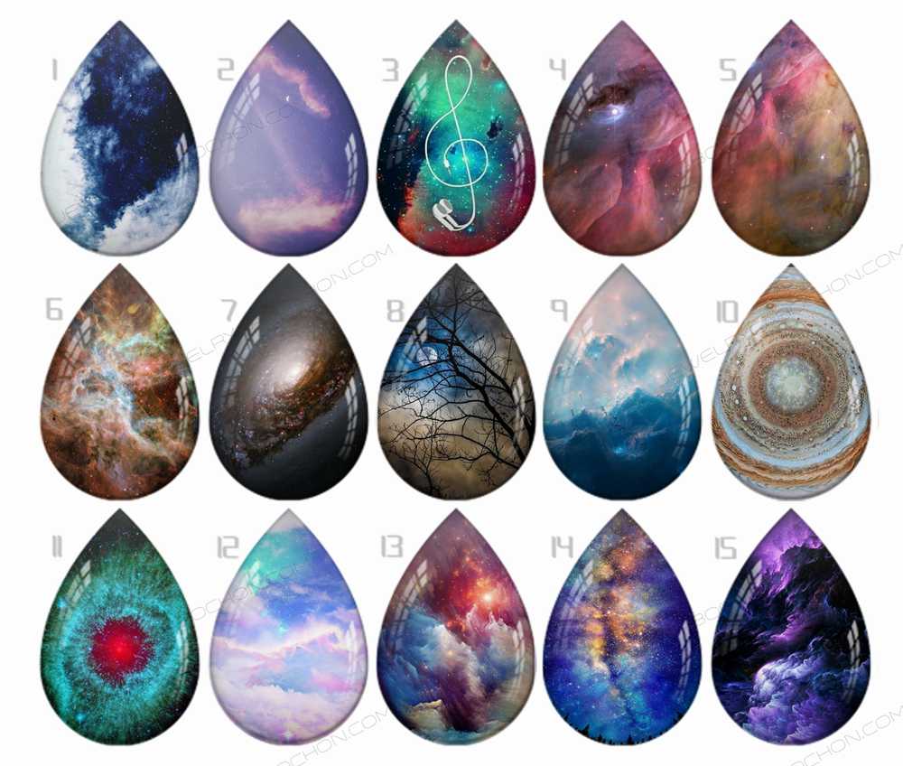 Handmade Teardrop Photo Glass Cabochons Starry sky B602
