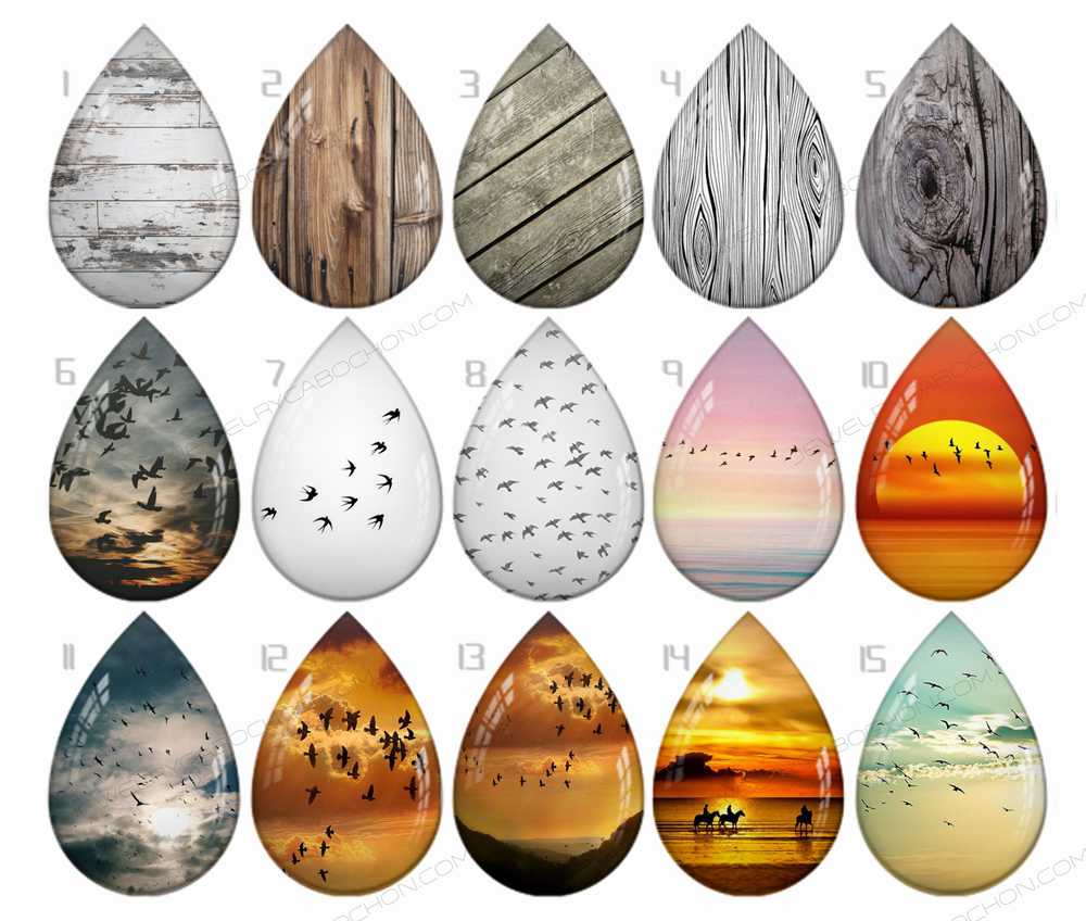 Handmade Teardrop Photo Glass Cabochons Wood grain B588