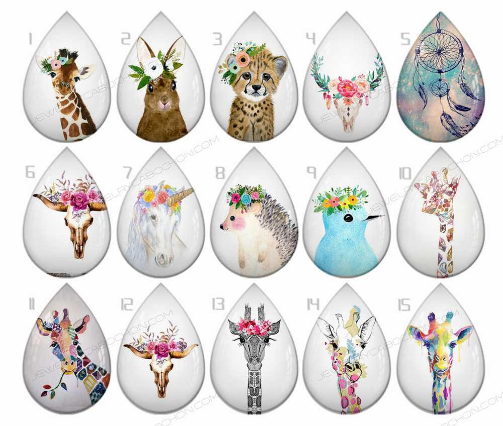 Handmade Teardrop Photo Glass Cabochons Animal B197