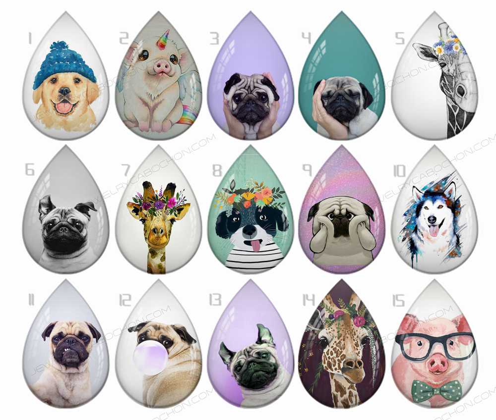Handmade Teardrop Photo Glass Cabochons Animal B649